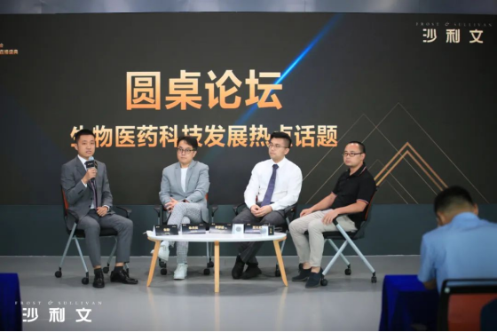 天境生物CFO朱杰伦先生、贝格尔生物医药创始人兼CEO李振韬博士、臻准生物开发总监葛光君先生围绕“生物医药科技发展热点话题”展开深入的讨论,沙利文执行总监朱毅先生担任本场圆桌主持。