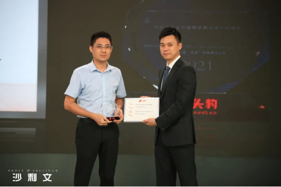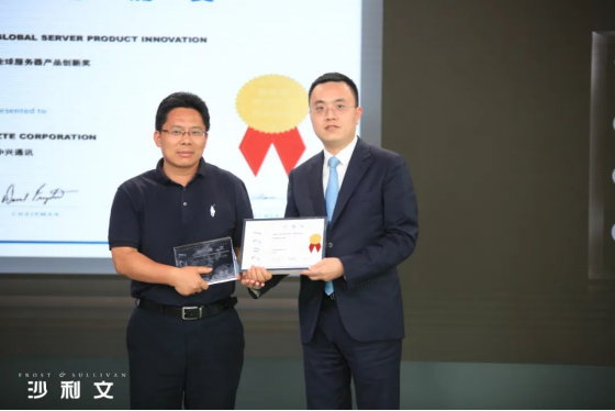陆景先生为中兴通讯东南片区服务器&存储CTO冯晓磊先生颁发“沙利文全球服务器产品创新奖”