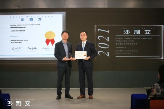 陆景先生为华为智能协作领域产品管理部部长陈群辉先生颁发“全球团队协作终端创新奖”