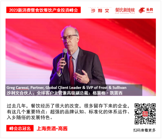 沙利文合伙人、 全球客户主管兼高级副总裁:格雷格·凯雷西为峰会开幕致辞 : 此次,沙利文邀请餐饮、供应链、投资专家悉数到场,让行业有了一个交流的舞台。