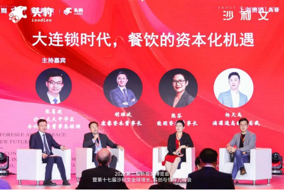 沙利文大中华区合伙人兼董事总经理张葛建、宸睿资本董事长胡维波、能图资本董事长熊芬、滴灌通东区总经理、集团高级副总裁杨天禹 ,共同为 餐饮大连锁时代的资本化机遇 ,探讨发展方向。