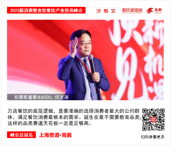 欧赛斯董事长&CEO何支涛 则表示: 当前,中国有600万家餐饮店。其中,万店级企业有5家,千店品牌及以上有96个。其中,2023年新开品牌超千家规模的,就有14个。