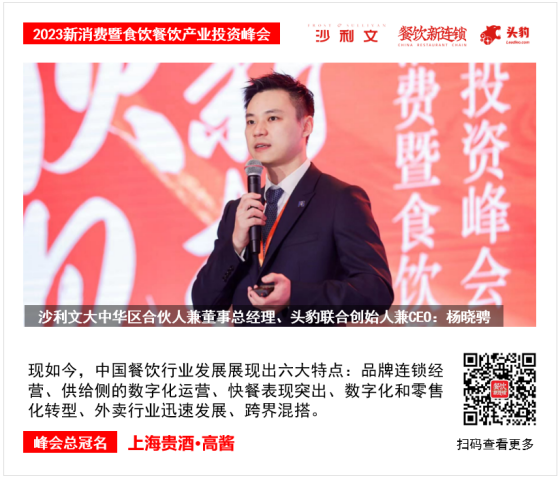 沙利文大中华区合伙人兼董事总经理、头豹联合创始人兼CEO杨晓骋认为: 当前餐饮市场高频次的外出就餐,开始驱动餐饮的快速增长。 中国餐饮行业发展,开始呈现六大发展趋势——