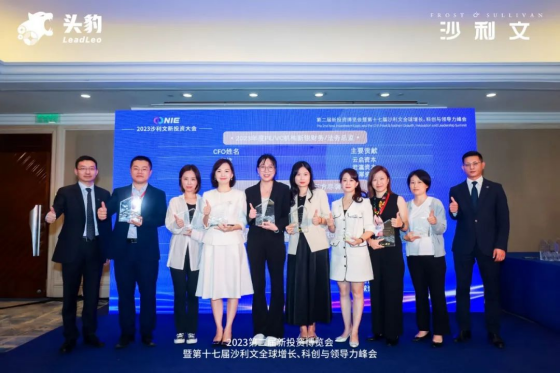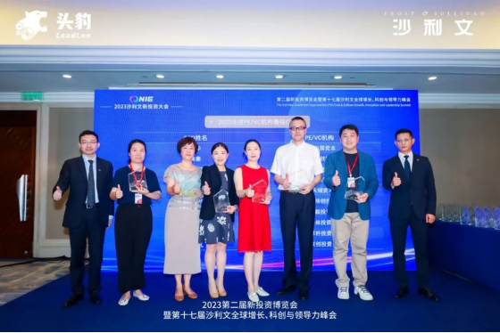 沙利文大中华区合伙人兼董事总经理张葛建、乾元资本副总经理陈庆鹏为上榜者颁奖,并合影留念。
