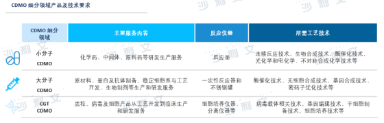 CDMO 行业承接了制药企业的工艺开发和生产职能,与以单一产能输出为主的 CMO 企业相比,CDMO 企业更为注重研发过程中生产工艺的创新能力。行业的参与者也不断通过革新技术平台和研发能力从而实现产业升级,提供更为多元化的服务。
