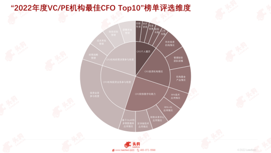榜单评选依据五大维度:CFO个人履历指标、CFO所在VC/PE机构情况、CFO财务数字化能力、CFO机构投资业务参与程度、CFO机构经营决策参与程度。