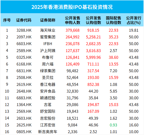 海天味业:8家基石认购46.67亿港元,占比46%,投资方包括高瓴/红杉/源峰/博裕【头部私募】、GIC/加皇银行/瑞银【外资机构】、佛山发展【地方产投】等;