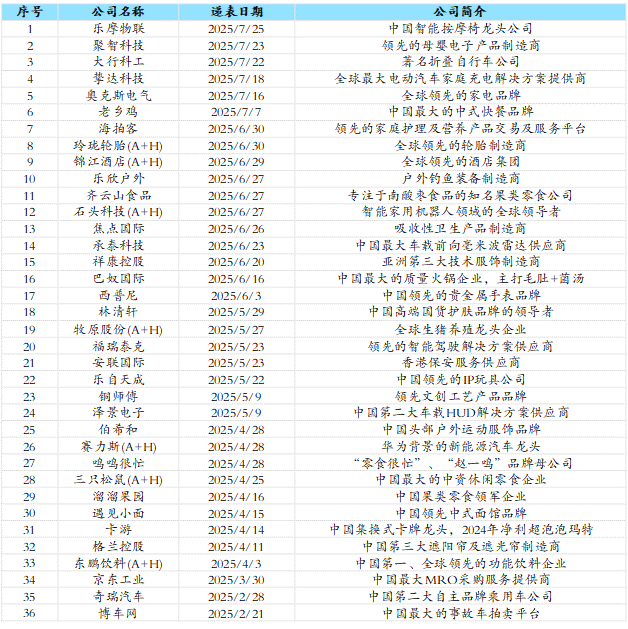 截至7月底,还有超30家消费企业已递表港交所。其中,7家A股公司赴港冲刺A+H双重上市,包括牧原股份、赛力斯、东鹏饮料、石头科技、锦江酒店、玲珑轮胎,前三家均为千亿级企业。此外还有多家明星消费企业。