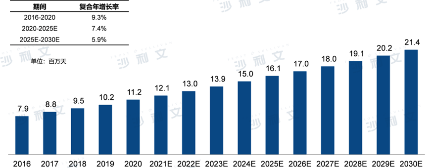 中国是全球最大的多重耐药性革兰氏阳性菌感染的抗菌药物市场之一,2020年市场规模为41亿元人民币,2016年至2020年的复合年增长率为6.1%。虽相较于2019年有略微下降,主要因素是由于疫情的发生,口罩的广泛使用使细菌感染的人群数量减少,但在政府有利政策和不断增长的研发费用推动下,中国抗菌药物市场规模将在2021年开始呈现增长趋势,在2025年增至82亿元人民币,2030年增至108亿元人民币,2025年至2030年的复合年增长率为5.8%。