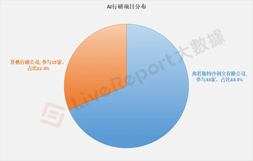 从AI拟上市公司的行业顾问来看,弗若斯特沙利文(Frost & Sullivan)为绝大多数AI公司提供行业顾问服务,参与了33家公司,参与率遥遥领先,占据68.8%的市场份额。