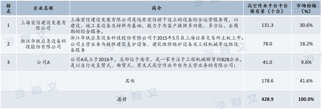 公司是高空作业平台、新型支护系统及新型模架系统设备运营服务市场的领导者之一;