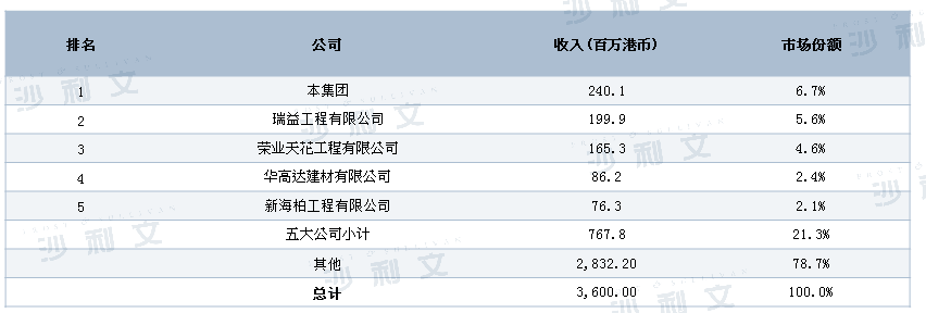公司与主要客户拥有稳固关系,彼等包括香港物业发展及建造行业的大型市场参与者;