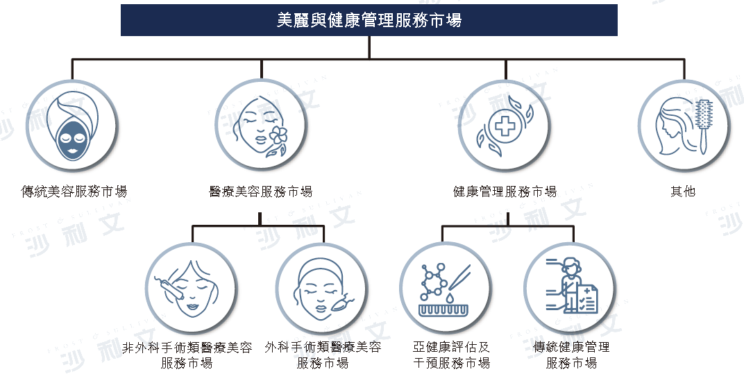 美丽与健康管理服务的概念指协助消费者维持及改善外形与身体健康的一系列广泛服务,其中包括传统美容服务、医疗美容服务、健康管理服务及其他。医疗美容服务可进一步分类为非外科手术类医疗美容服务及外科手术类医疗美容服务。健康管理服务指为健康及亚健康人士提供的一站式体检、咨询及干预服务,就检查及干预方式可细分为:(i)应用临床医学的传统健康管理服务;及(ii)应用功能医学的新兴亚健康评估及干预服务。