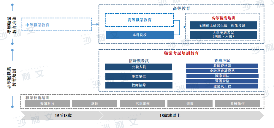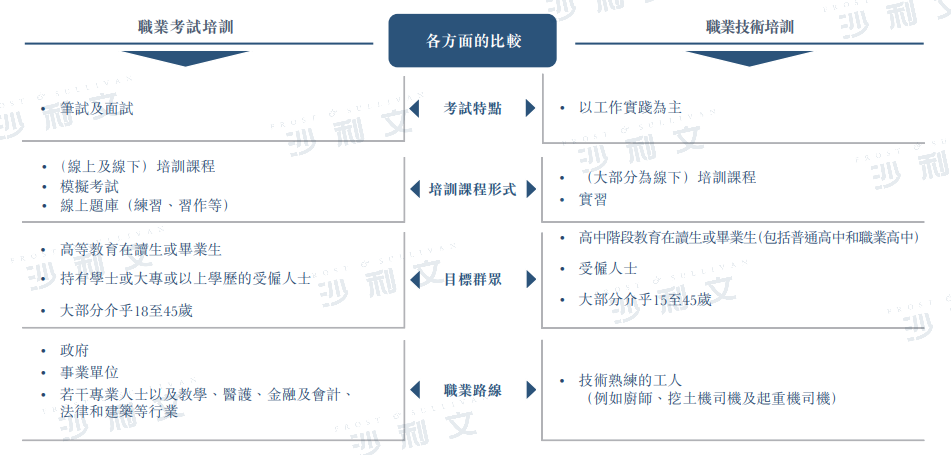 招录类及资格证考试通常以结果为本。通过相关考试后,学员方能够获取工作机会或获得资格证书,因而促使学员参加职业考试准备,提高通过相关考试的机会。部分学员(尤其是有全职工作的成人学员)倾向可灵活按其偏好的时间及地点进行的课程学习,而部分其他学员则更愿意以更有计划、更集中及更投入的方式准备相关考试,故对在线及线下职业考试培训服务仍存在持续需求。在选择合适的服务供货商时,学员通常会根据供货商能否通过适当的教学模式及课程设计满足其学习需求而做出决定。