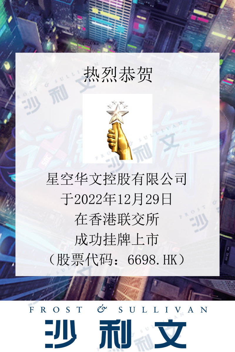 沙利文公司在文化和娱乐行业拥有丰富的研究经验,协助知名企业成功登陆资本市场,成功上市案例包括:Grindr Inc.(GRND.NYSE)、柠萌影业(9857.HK)、博维智慧(1204.HK)、德盈控股(2250.HK)、青瓷游戏(6633.HK)、普普文化(CPOP.NASDAQ)、稻草熊(2125.HK)、库克音乐(KUKE.NYSE)、长信传媒(XJB.SGX)、辉煌明天(1351.HK)、雅乐科技(YALA.NYSE)、乐享互动(6988.HK)、祖龙娱乐(9990.HK)、蓝城兄弟(BLCT.NASDAQ)、力天影业(9958.HK)、九尊数字娱乐(1961.HK)、煜盛文化(1859.HK)、驴迹科技(1745.HK)、新石文化(1740.HK)、心动公司(2400.HK)、旅橙文化(8627.HK)、Friend Times(6820.HK)、万达体育(WSG.NASDAQ)、途屹控股(1701.HK)、家乡互动(3798.HK)、飞扬集团(1901.HK)、火岩控股(1909.HK)、羚邦集团(2230.HK)、海天地悦旅(1832.HK)、禅游科技(2660.HK)、如涵控股(RUHN.NASDAQ)、复星旅游文化(1992.HK)、创梦天地(1119.HK)、映客互娱(3700.HK)、虎牙(HUYA.NYSE)、雷蛇(1337.HK)、阅文集团 (0772.HK)、美图(1357.HK )、中国数字视频(8280.HK)、雅仕维(1993.HK)、华尔德动漫(1566.HK)。