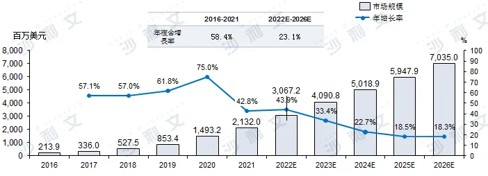 东南亚数字广告市场规模,2016年-2026年(预测)