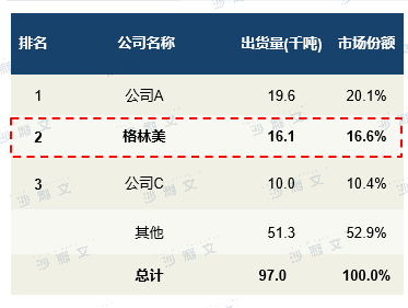 按四氧化三钴出货量计,2021年全球四氧化三钴的总市场规模为97.0千吨。全球四氧化三钴市场是一个高度集中的市场,前3名四氧化三钴供货商占市场规模的47.1%。就2021年四氧化三钴的出货量而言,格林美以16.1千吨的出货量及16.6%的市场份额位居全球第二。