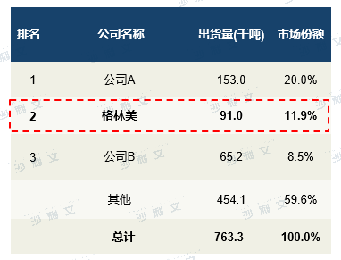 按三元前驱体出货量计,2021年全球三元前驱体的总市场规模为763.3千吨。前三名的三元前驱体供货商占市场规模的40.4%。就2021年三元前驱体的出货量而言,格林美出货量超过91.0千吨,市场份额为11.9%,位居全球第二。