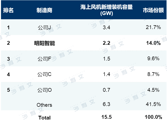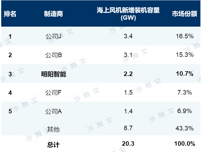 中国前5大风机制造商(海上风机新增装机容量),2021