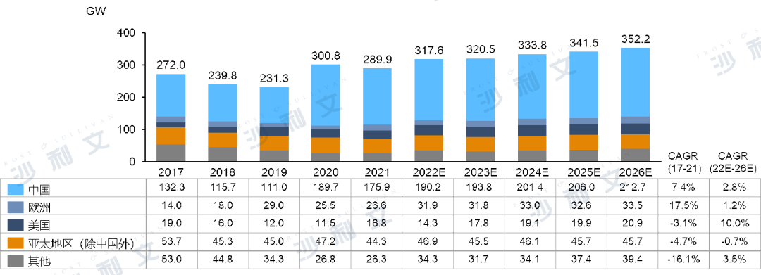 各国都提出了减少碳排放、加快发展可再生能源电力的目标和承诺。例如,中国承诺到2060年实现碳中和。欧盟制定了发展目标,到2030年,可再生能源预计将占能源终端使用量的40%。英国政府已经设定了目标,到2035年,英国的发电将不再使用化石燃料,并且100%来自可再生能源。由于各国政府出台的利好政策,以新增装机容量计算,主要包括风电、光伏和水电的可再生能源在整个能源市场的份额已从2017年的63.2%增加到2021年的89.5%,预计将从2022年的91.2%增加到2026年的97.4%。