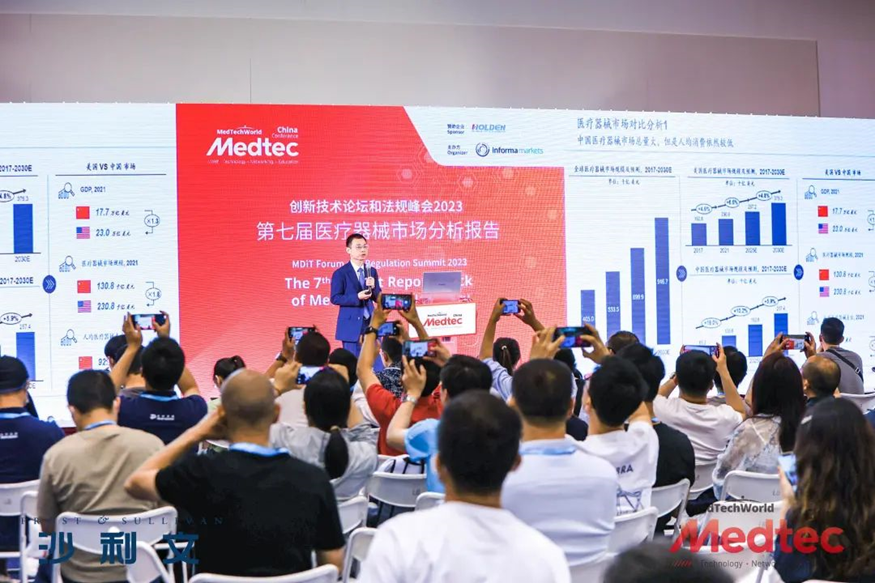 创新技术论坛和法规峰会2023同期举办,弗若斯特沙利文(Frost & Sullivan,简称“沙利文”)大中华合伙人兼董事总经理毛化受邀出席第七届医疗器械市场分析报告会议,以《2022-2023医疗器械产业最新趋势与发展机会》为主题发表演讲,与中国医疗器械行业协会特聘顾问&颐道资本管理合伙人赵一珍等市场分析专家一起,为参会观众带来医疗器械市场最新发展趋势、热点、增长点及变化,现场人数爆满,座无虚席。