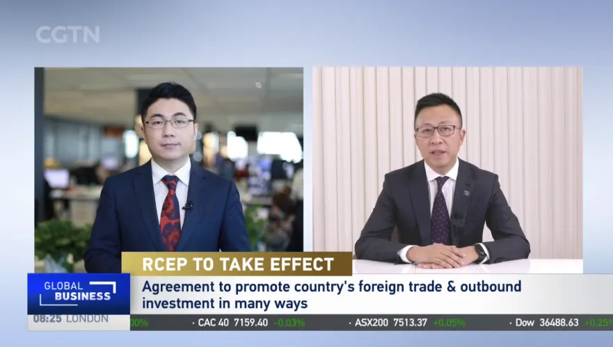 如何解读中国正式加入RCEP?RCEP利好中国哪些产业?加入RCEP后,预测中国在全球产业链布局中的地位将发生哪些变化?RCEP对中国对外贸易有何影响?RCEP如何指导客户企业从降低关税中获益和找到新机遇?弗若斯特沙利文(Frost & Sullivan,简称“沙利文”)全球合伙人兼大中华区总裁王昕博士日前接受中国国际电视台《全球财经》(CGTN Global Business)栏目采访,分享对于中国加入RCEP的一系列看法。