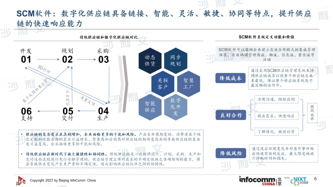 如数字化采购是助力企业降本增效、积累核心数据资产的重要手段,相较于传统线下采购,平台化采购模式优势突出,可将采购信息以数据化形式呈现,降低了采购成本,具有高效率、高透明度的特点;数字化供应链能对企业供应链进行整合和优化,其覆盖范围从供应商到最终用户,包括原材料采购、生产、仓储、物流、销售等多个环节,企业通过改善上、下游供应链关系,整合和优化供应链中的信息流、物流、资金流等,以提高企业的竞争优势。