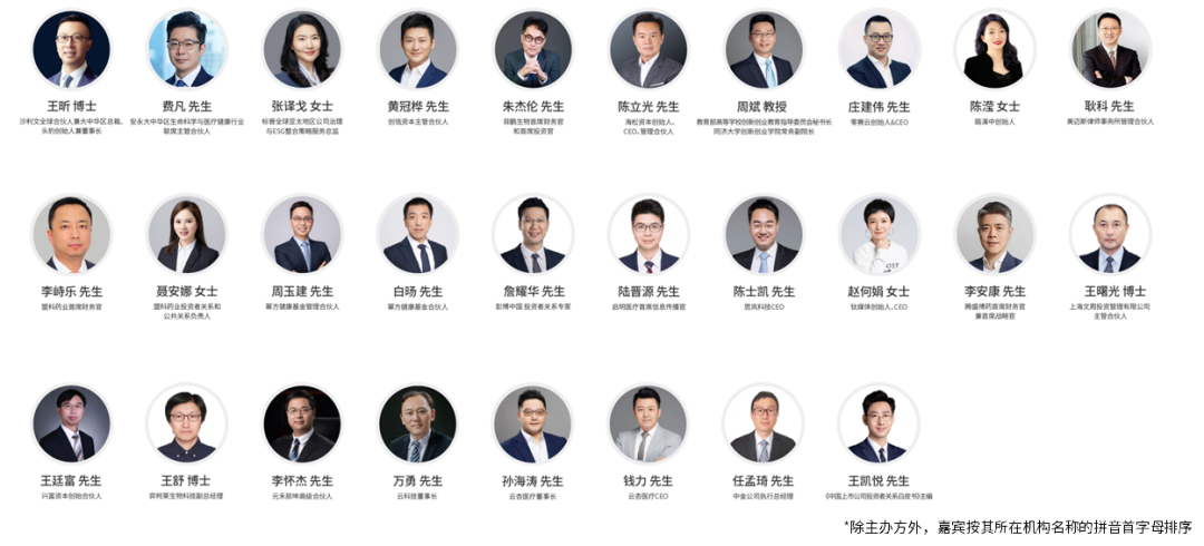 战略合作伙伴:博鳌亚洲论坛全球健康论坛大会、中国生物医药产业链创新与转化联盟(CBIITA )、上海市生物医药科技发展中心、安永、金杜、竞天公诚、中国金融信息中心、路演中、钛媒体、捷利交易宝、餐饮新连锁、鲸平台