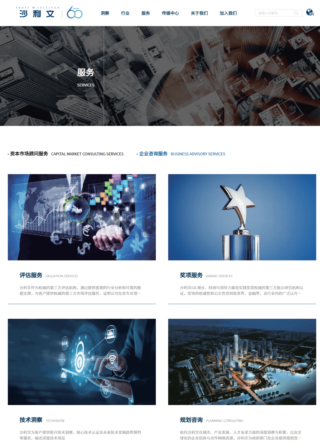 沙利文深耕全球资本市场及企业咨询服务,为企业提供全方位的投融资及其他各类专业咨询服务,包括尽调服务、估值服务、评估服务、战略咨询、管理咨询、规划咨询、技术顾问、财务顾问、行业顾问等。