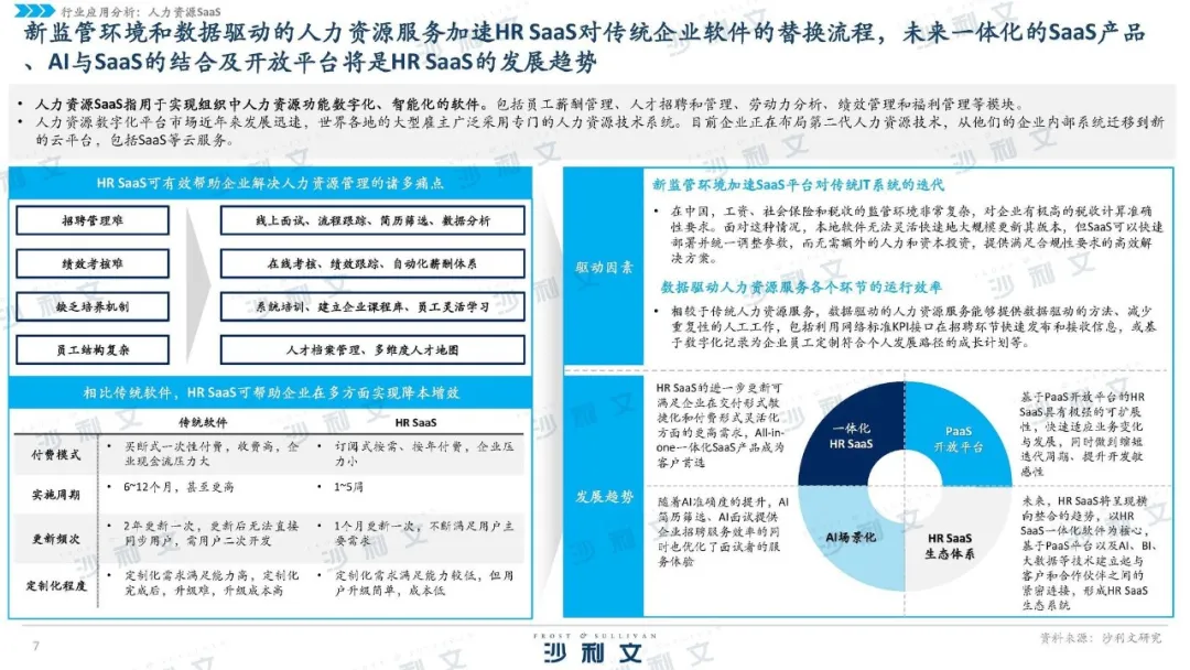 最后,在行业应用方面,张朔禹以人力资源SaaS(简称:HR SaaS)和智能运维为例,分别作了简要分析。HR SaaS是指用于实现组织中人力资源功能数字化、智能化的软件,相比传统软件,HR SaaS可有效帮助企业解决人力资源管理的诸多痛点,帮助企业实现降本增效。未来,HR SaaS将呈现横向整合的趋势,以HR SaaS一体化软件为核心,基于PaaS平台以及AI、BI、大数据等技术建立起与客户和合作伙伴之间的紧密连接,形成HR SaaS生态系统。另一应用——智能运维,是指将人工智能应用于运维领域,基于已有的运维数据(日志、监控信息、应用信息等),通过机器学习的方式来进一步解决自动化运维没办法解决的问题,数据量激增为智能运维带来巨大产业机会,智能运维与云计算的深度耦合可为企业进一步解放IT生产力,全链路、一体化的智能运维将是未来的主要趋势。